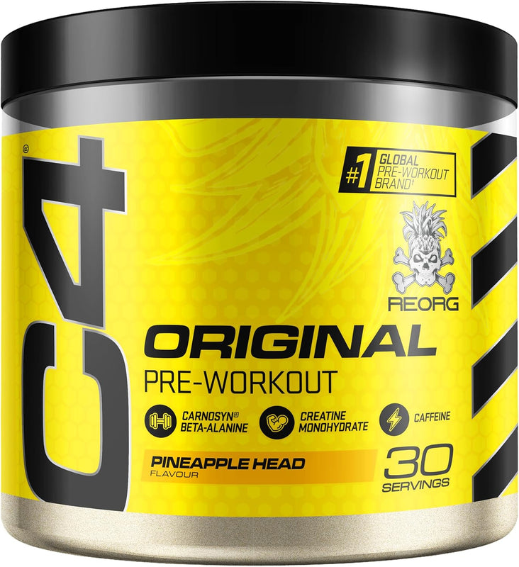 Step up your training game with the Cellucor C4 Original Pre-Workout – Pineapple Head, a special REORG limited edition created in support of the Reorg Foundation. This world-renowned explosive pre-workout formula is built to deliver energy, focus, endurance, and performance like no other.