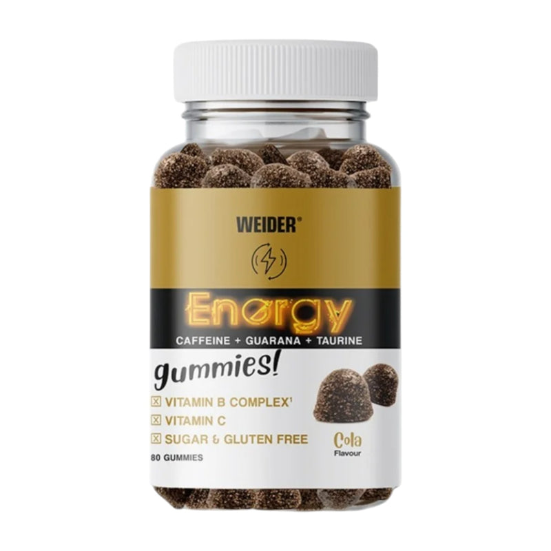 WEIDER Energy Gummies are a sugar-free, gluten-free supplement formulated to deliver fast-acting energy and mental focus. Each cola-flavoured gummy contains a targeted blend of caffeine, guarana, taurine, and essential B vitamins to support alertness, reduce fatigue, and enhance physical performance. With added vitamin C for antioxidant support and a convenient chewable format, this energising formula is ideal for workouts, long shifts, or busy days.