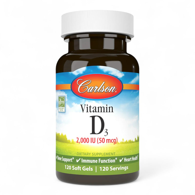 Carlson Vitamin D3 – 2,000 IU (50 mcg), 120 Softgels High-strength D3 to support bones, immunity, and calcium absorption—non-GMO and third-party tested.