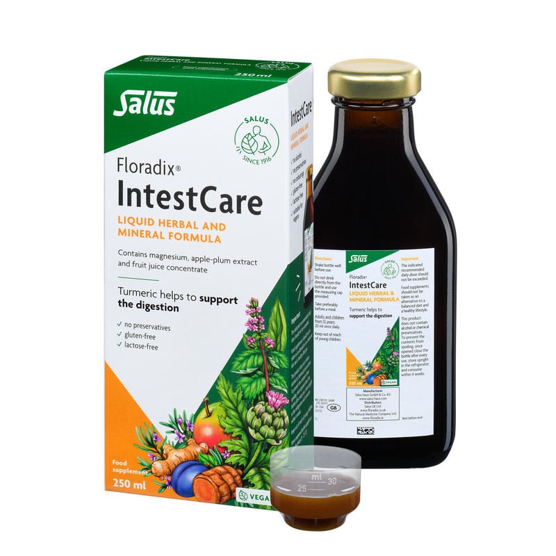 Floradix IntestCare is a unique liquid formula designed to support digestive wellness. This fruity-tasting supplement combines traditional herbal extracts, including turmeric, peppermint, and ginger, with essential magnesium. It offers a gentle, non-laxative way to complement your daily routine and contribute to normal digestive function as part of a balanced lifestyle.