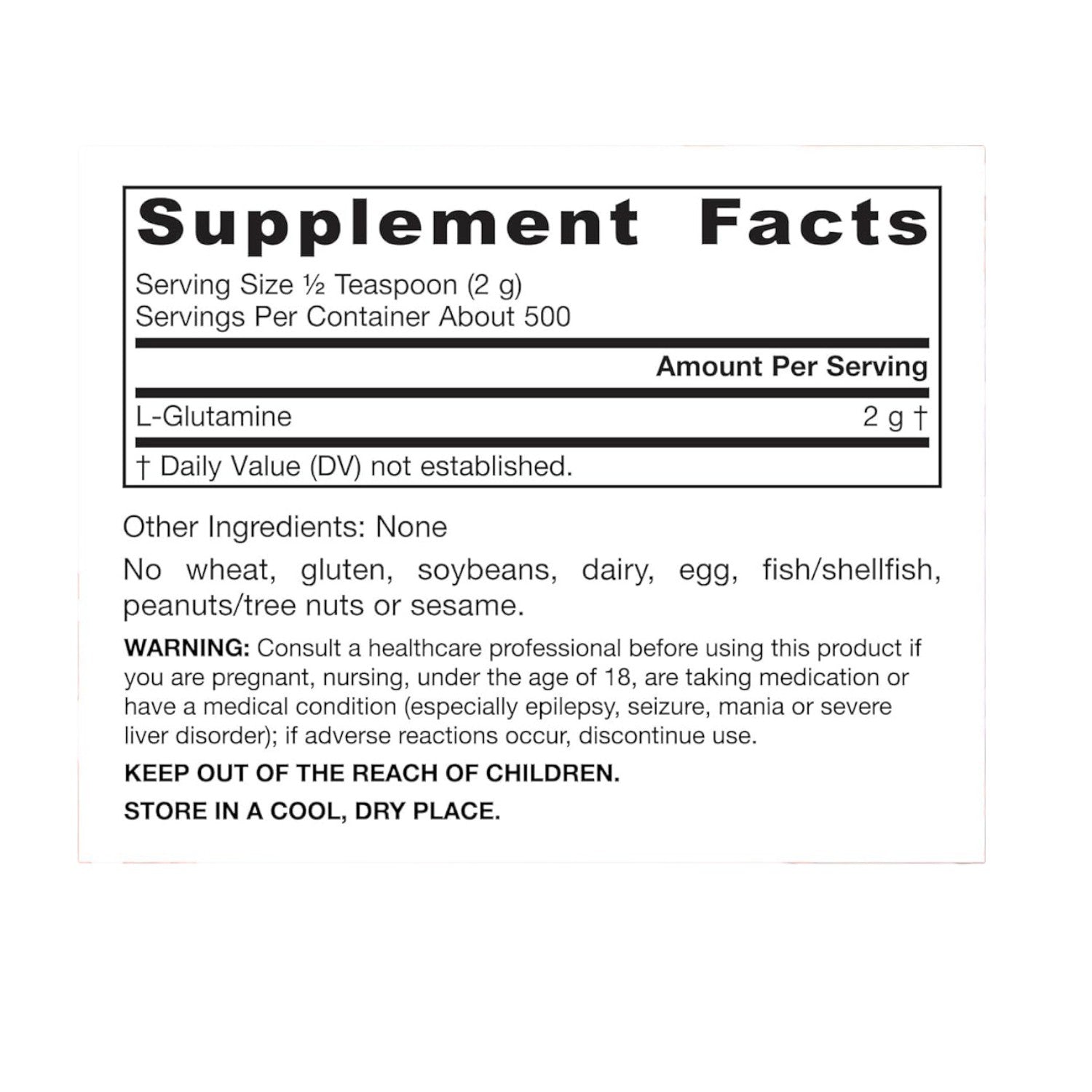 100% pure L-Glutamine with no additives