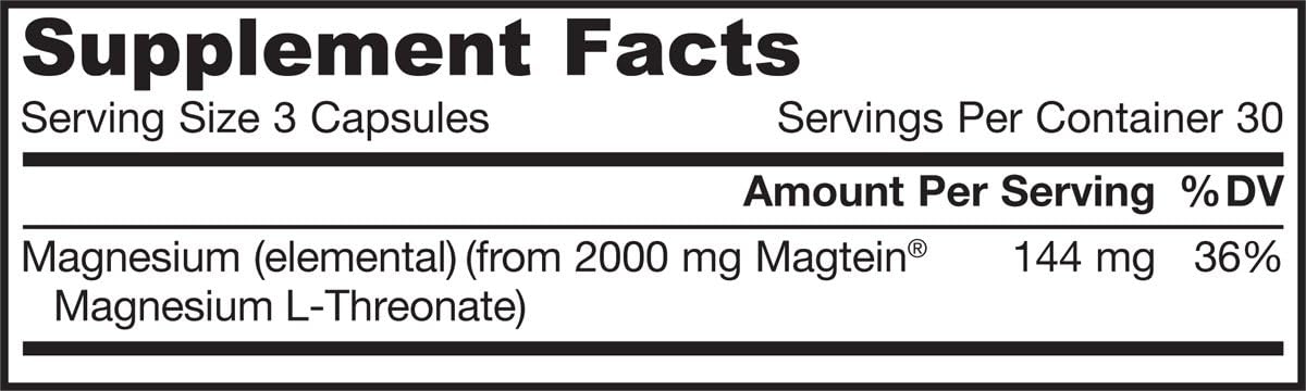 Magnesium (from Magnesium L-Threonate) – 144 mg