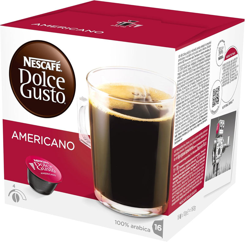 NESCAFÉ Dolce Gusto Americano Coffee Pods deliver a smooth, aromatic black coffee experience in convenient capsule form. Designed for use with NESCAFÉ Dolce Gusto coffee machines, each pod helps create a rich, café-style Americano with a balanced flavour and velvety crema.