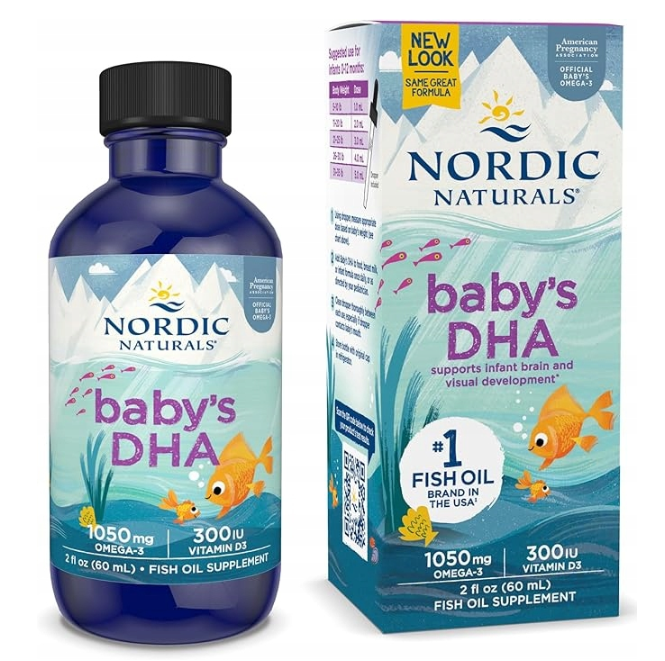 Nordic Naturals Baby's DHA provides a pure, unflavored source of essential Omega-3 fatty acids and Vitamin D3 specifically designed for infants. Sourced from 100% wild Arctic cod liver oil, this liquid formula offers key nutrients that are commonly recommended for a baby's early nutritional foundation. With a steadfast commitment to purity, freshness, and sustainability, it's a trusted choice for parents seeking a high-quality dietary supplement for their baby's wellness regimen.