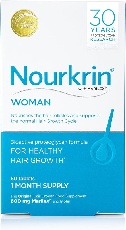 Nourkrin Woman is a premium dietary supplement designed to provide foundational nutritional support for women's hair. This 60-tablet pack features the unique Marilex® complex, combined with Biotin and Silica, in a natural, drug-free formula suitable for all hair types.