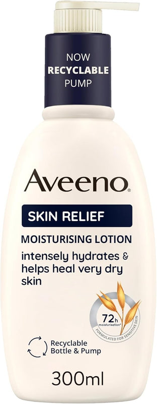 Aveeno Skin Relief Moisturising Lotion 300ml pump bottle with Triple Oat & Shea Butter.