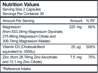 Not all magnesium is equal. Our Magnesium Complex contains 3 distinct types of magnesium, aimed at providing superior absorption and boosting the number of benefits our formula delivers. Our complex provides a potent dose of Magnesium Citrate, Glycinate and Malate with a topping of Zinc and D3, resulting in a wealth of benefits.