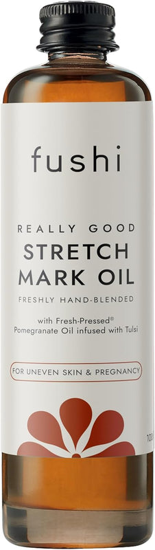 Nourish, repair, and protect your skin’s natural elasticity with Fushi Really Good Stretch Mark Oil, a luxurious blend of Fresh-Pressed® Pomegranate, Tulsi, and Avocado oils. Handcrafted in small batches, this restorative formula is designed to reduce the appearance of stretch marks and scars, keeping skin smooth, hydrated, and supple.