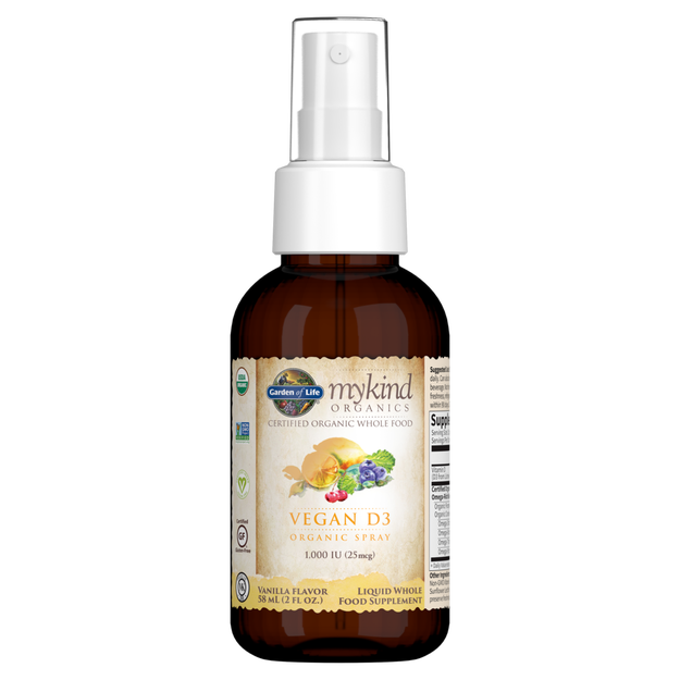 The Garden of Life mykind Organics Vegan D3 Spray is designed to help support immune system function and promote calcium absorption for healthy bones. This vanilla-flavoured whole food spray is made from real, nutritious foods.