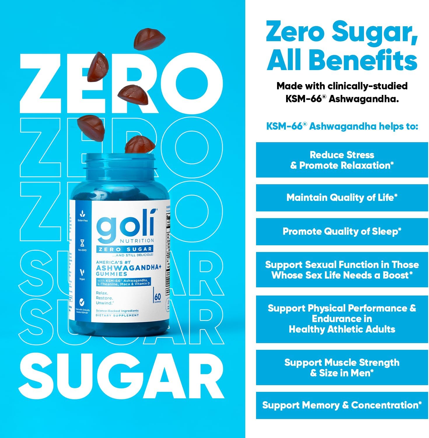Goli Ashwagandha+ Gummies – Zero Sugar, 60 Count