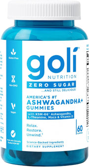 Goli Ashwagandha+ Gummies – Sugar-Free, 60 Count Formulated with KSM-66® Ashwagandha, L-Theanine, Maca, and Vitamin D, these vegan, zero-sugar gummies offer a convenient and clean way to support daily balance—no pills, just great-tasting wellness.