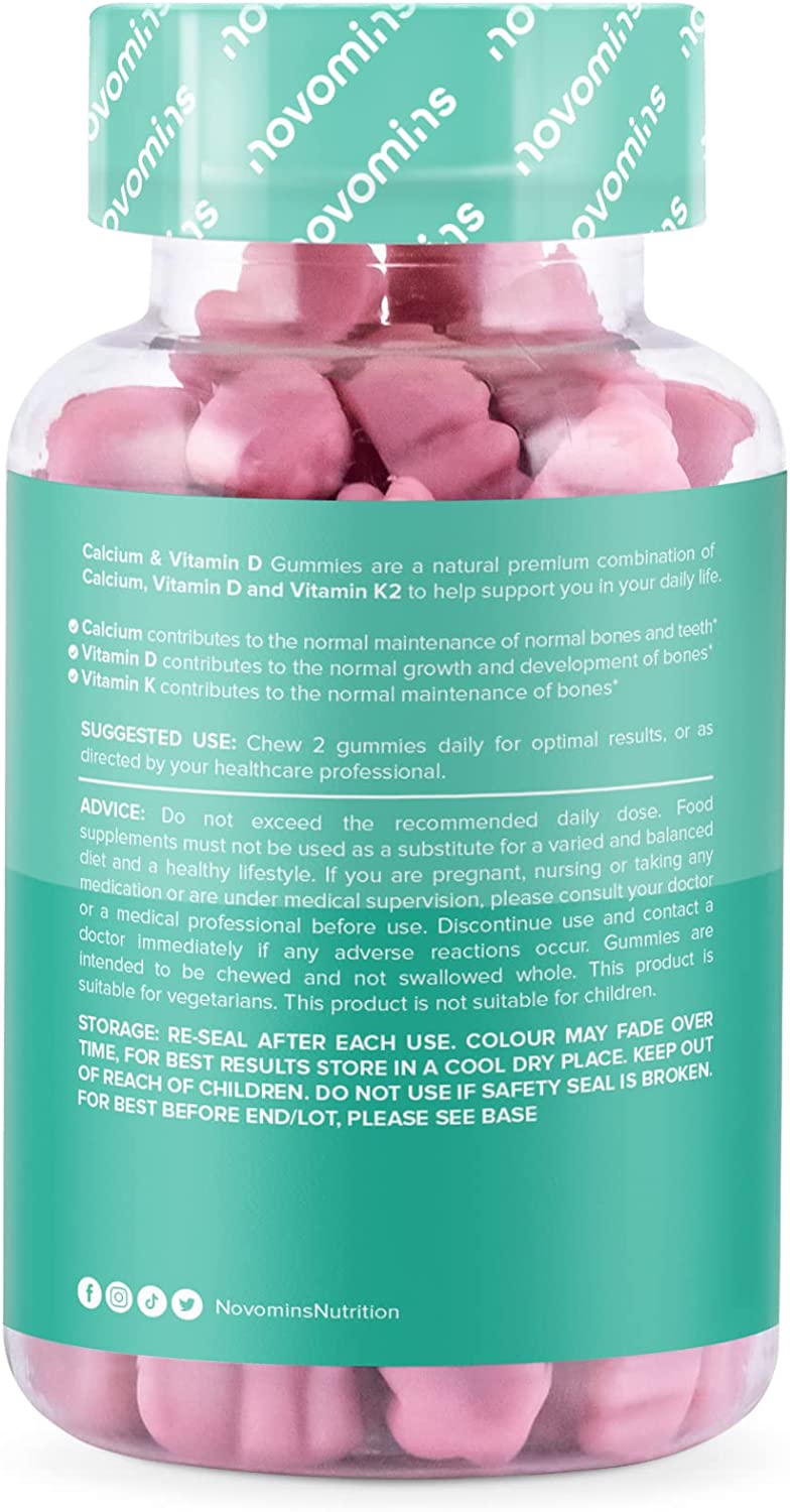 Novomins Calcium Gummies are easy to chew, vegetarian, gelatine-free, gluten-free, and non-GMO, making them suitable for a variety of dietary needs. In addition to calcium and vitamin D, our gummies are also formulated with natural flavours and are free from artificial sweeteners and colours, making them a guilt-free treat.